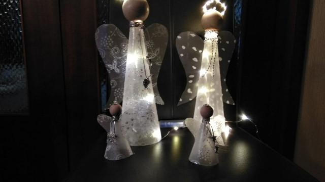 Unser Mitglied Angelika Garbade möchte mit uns kreativ werden. Sie hat eine tolle Idee um Engel zu basteln. Aus durchsichtiger Lampenfolie, mit einem zarten Organza Kleid und dazu beleuchtet durch die Lichterkette, einfach zauberhaft.